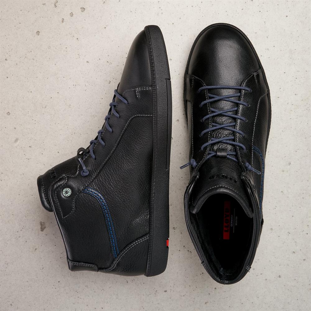 LLOYD præsenterer BEVERLY high-top sneaker. Denne model er fremstillet af læder i et ekstra slidstærkt og fleksibelt materiale.